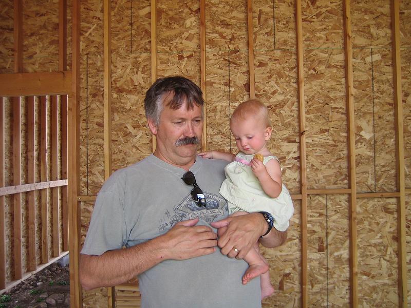 Mike "PopPop" and granddaughter Natalie having lunch in the barn